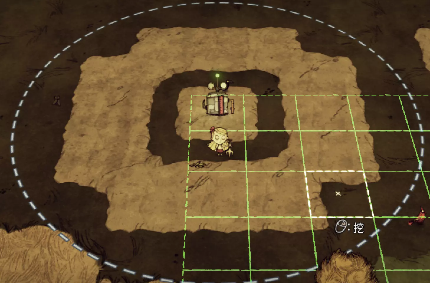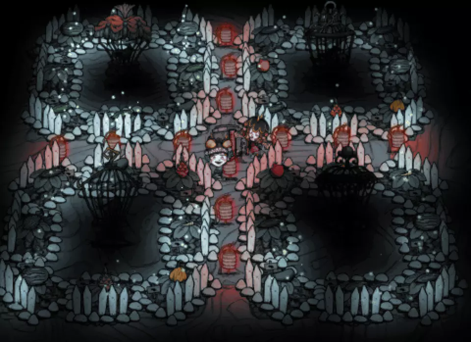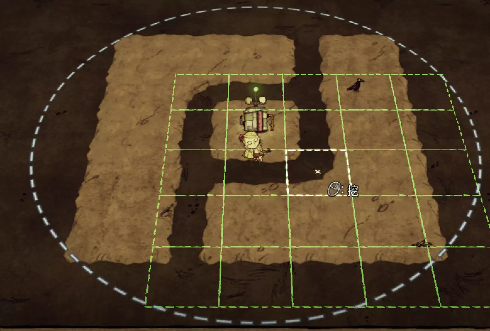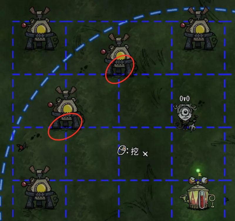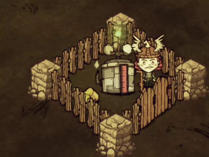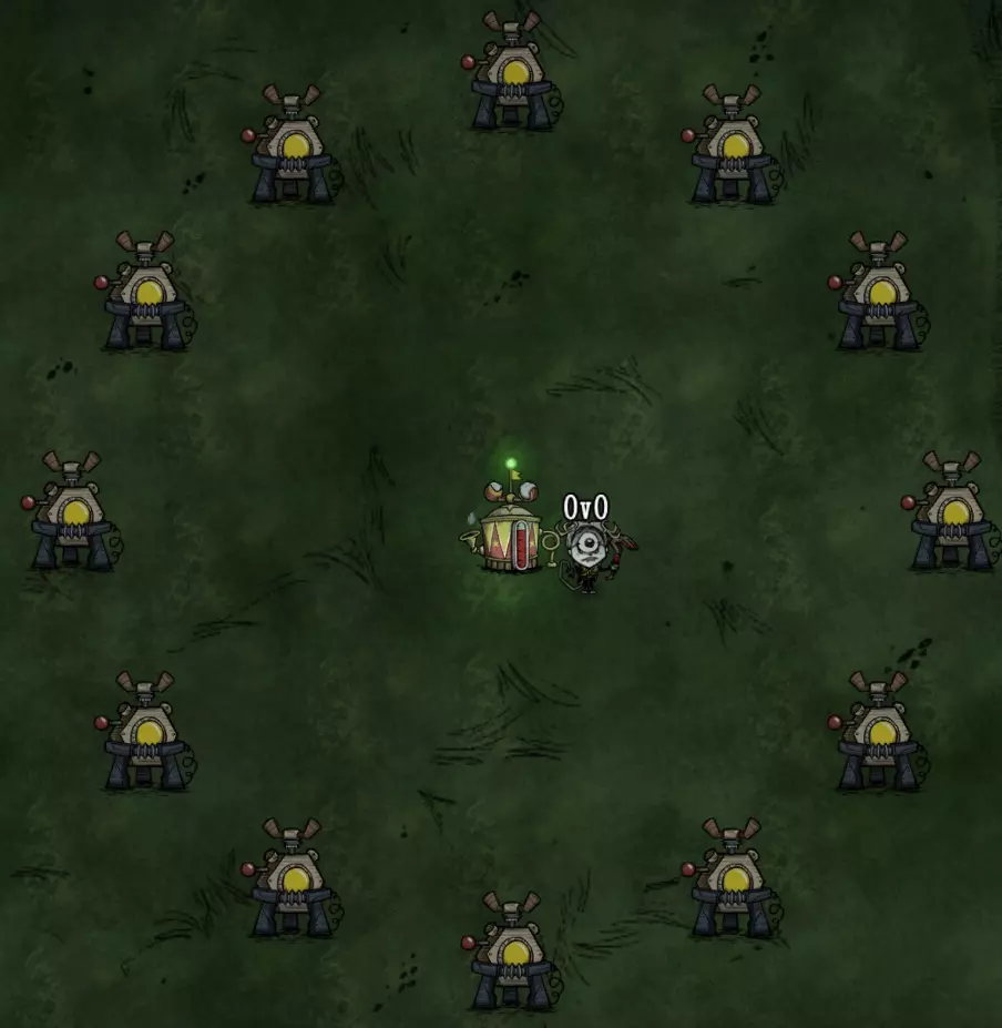 教你如何规划你的基地,想不想成为建家大佬呢,接着往下看吧 前言 这篇文章是讲解一些建家方面的常识技巧,教你如何规划自己的基地,我不会给出成型的豪华基地,那样只会限制想象空间,让我们创造出属于我们自己的基地吧! 我们建造的基地要遵循便利,实用,合理等原则 便利:我们在工作或吃饭的时候不需跑很长的路,比如锅和冰箱,吃个饭如果要跑一个屏幕的话,只怕早饿死了。实用:基地成型快,需循序渐进。比如我特别喜欢烹饪,建了15个锅的基地,结果建家时把锅都摆上了,却发现没石头做农场,最后锅是有了,食物却没了= = 合理:基地建筑的摆放要合理。夏天有自燃现象,需要灭火器,要规划好建筑位置,确保它们都在灭火器的有效范围内,但灭火器对火坑可不太友好! 先了解一个格子: 建家当然少不了干草叉,干草叉将《饥荒》世界分成了一个一个的小格子。但要想把基地建得整齐,只有干草叉是不够的(难道让我一个格子种一根草吗OvO),还需要网格种植mod,该mod能将每个格子分成更密的点。 怎么找格子的边角: 中间的叉是格子的中心。