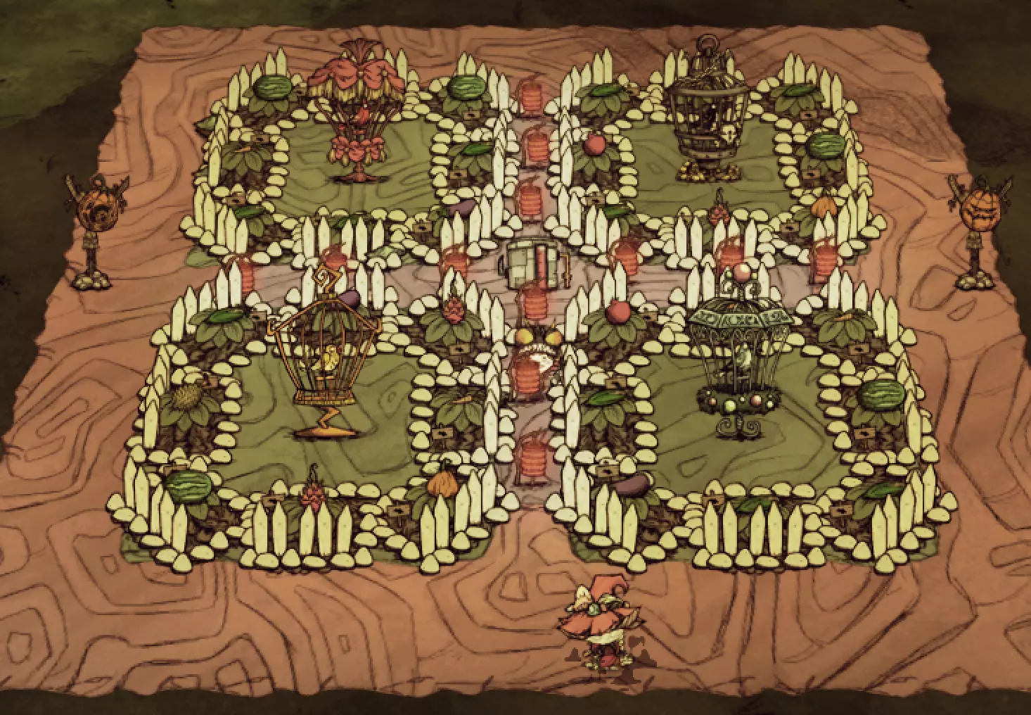 你也可以将多种地皮混合使用。我个人比较喜欢原生态的基地,会把它布置得五颜六色的,其中菌类地皮是非常漂亮的地皮。 特殊建造方法: 大型环形农场 //随着最近一次更新,农场机制已完全改变,此部分内容已失效。目前只需注意:耕地机是在原有地皮基础上覆盖新地皮,且优先级最高,无法在洞穴岩石地皮、岩石地皮以及人造地皮上使用。// (听说农场和萤火虫更搭哦OvO)//目前尚不清楚萤火虫对农场是否有用。现在的农场作物新增了快乐值设定,提升快乐值的方法除手动呵护和果蝇呵护外,还可使用排箫、独奏乐器、牛角、贝壳钟等几乎所有乐器。// 陷阱制作:3X3最普通的建造方法