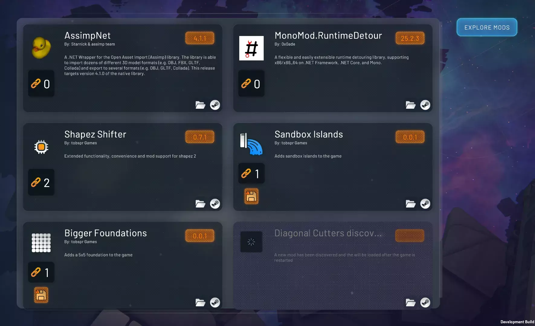 此外,我们希望如果开发团队还有时间的话,能再添加一些独特的成就! 如果发现任何问题、遗漏或数据不匹配之处,请务必在评论区分享你的想法! ### 模组支持 - 模组支持现已基本完成,洛伦佐正在处理最后的细节,以便我们能够最终确定——一旦测试版可用,我们将立即跟进,为感兴趣的模组制作者提供抢先体验! - 模组将通过Steam创意工坊提供,因为在我们测试mod.io后,对其集成效果并不满意。我们还从《Shapez 工业》的反馈中吸取了经验,因此模组系统更加完善,例如支持模组之间的依赖关系。如果你想在我们准备就绪时收到通知,请务必加入《shapez 2》的Discord服务器! 开发中截图: