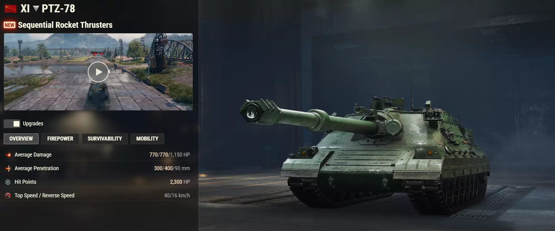 PTZ-78凭借其“连续火箭推进器”为坦克歼击车(TD)类别带来了极致的机动性。固体燃料助推器会激活数秒,提升加速度、机动性和可操作性。 推进器彼此独立工作,确保了更敏锐的车体旋转和更快的转向,并且它们不会限制倒车移动。推进器在每场战斗中可多次使用,激活之间有冷却时间。 STK-2