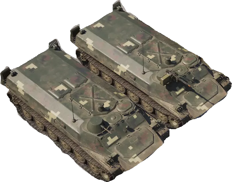 BMP-1TS 履带式步兵战车 BMP-1TS 是在经典 BMP-1 底盘基础上改进而来的现代化步兵战车,经过升级以提升战场实用性。在游戏中,它是一款具备两栖能力的快速步兵战车,可搭载下车步兵投入战斗,同时通过炮塔上的主炮和反坦克发射器提供直接火力支援。