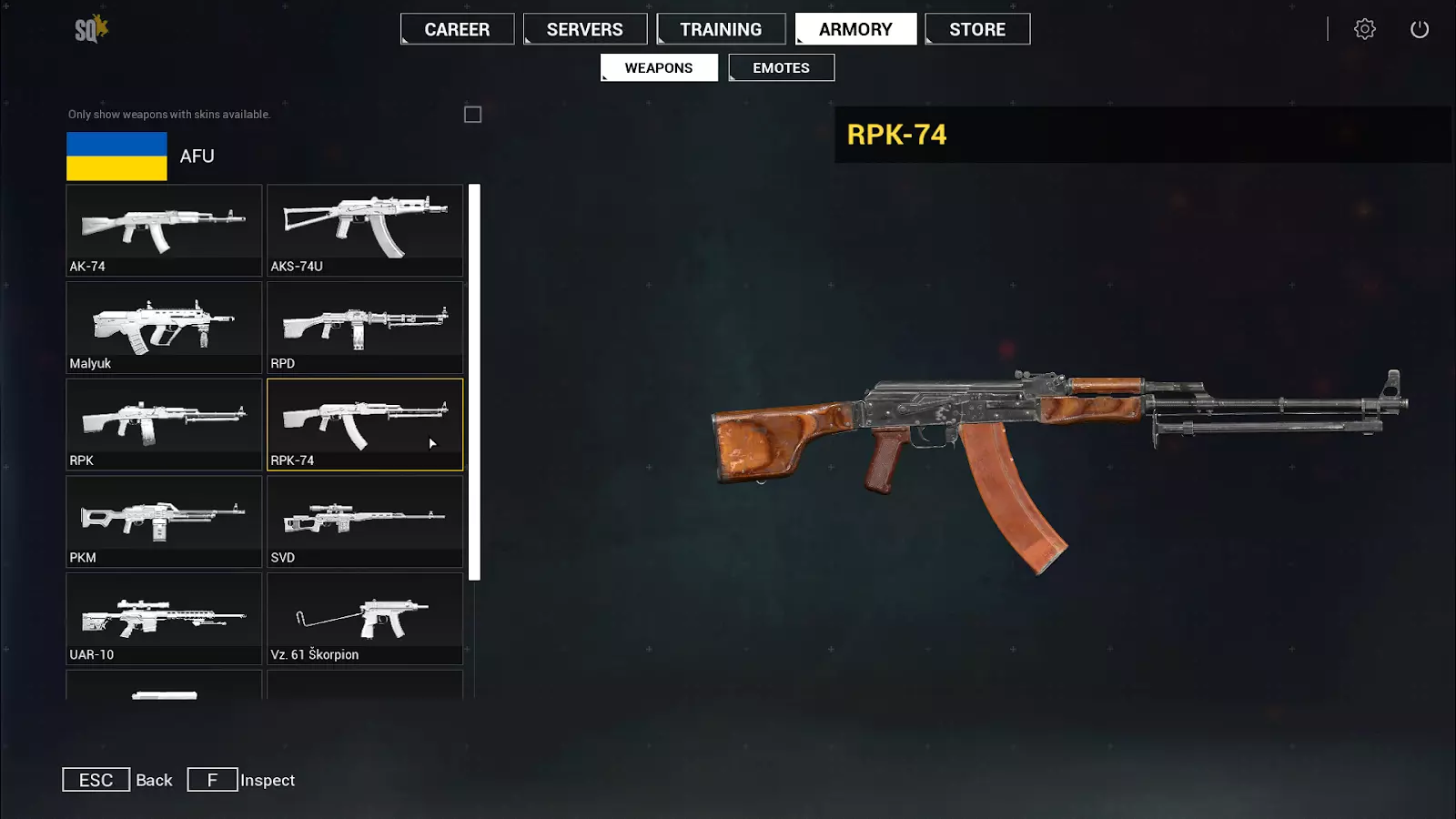 AFU武器:AK-74和AKS-74步枪 这款经典的5.45毫米步枪平台已在v10.0版本中完成全面重制,并包含多种瞄具变体。注意:计划在后续更新中增加更多瞄具选项——请查看说明底部了解详情! AK-74: