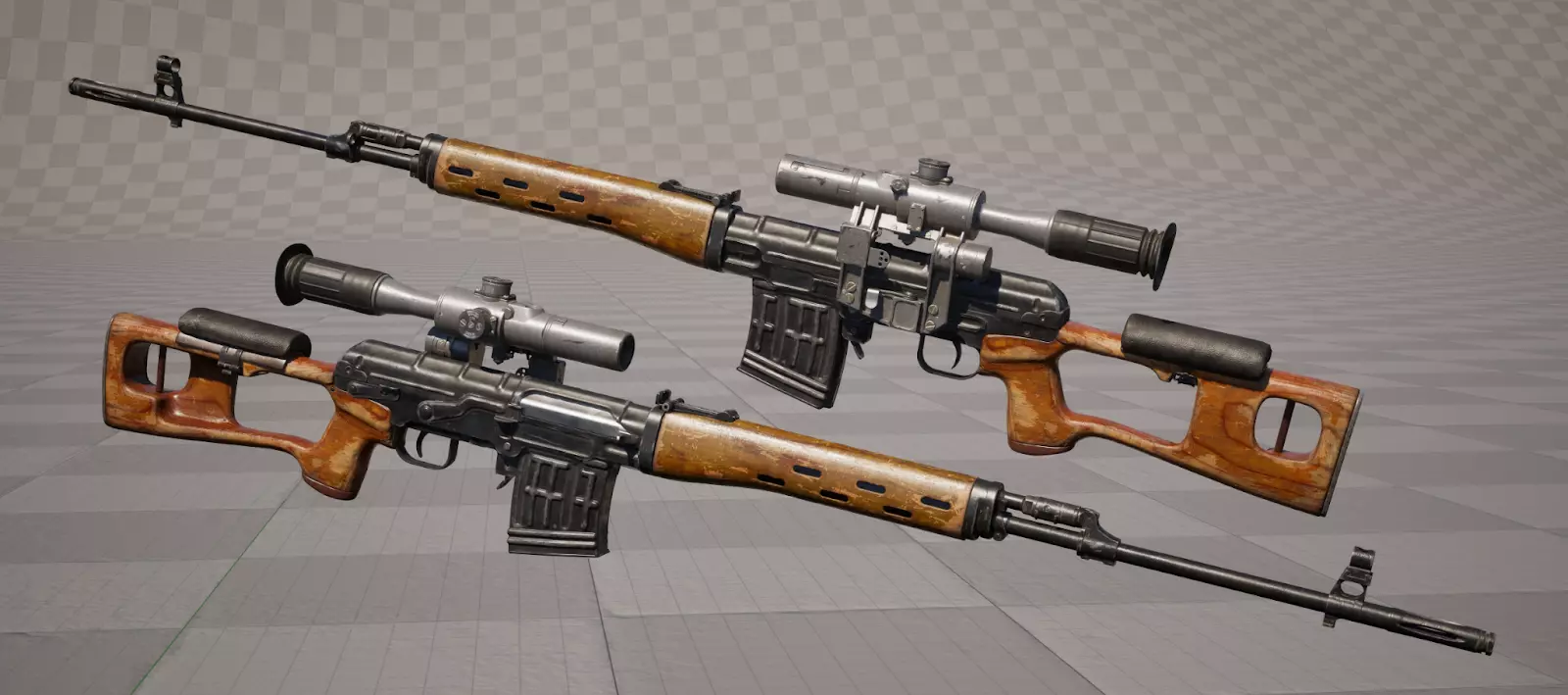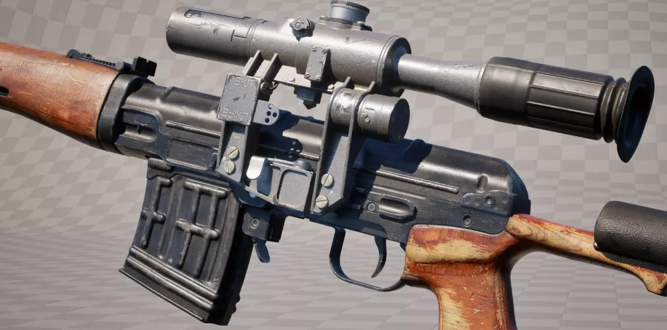 SVD 狙击步枪 苏联时期的狙击步枪,已为 v10.0 版本进行全面重新建模,包括 PSO-1 瞄准镜的更新模型。
