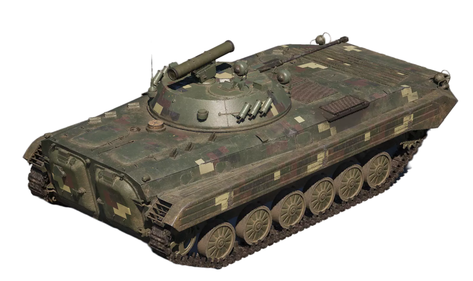BMP-1 履带式步兵战车 经典载具,带有独特的乌克兰武装部队迷彩图案。