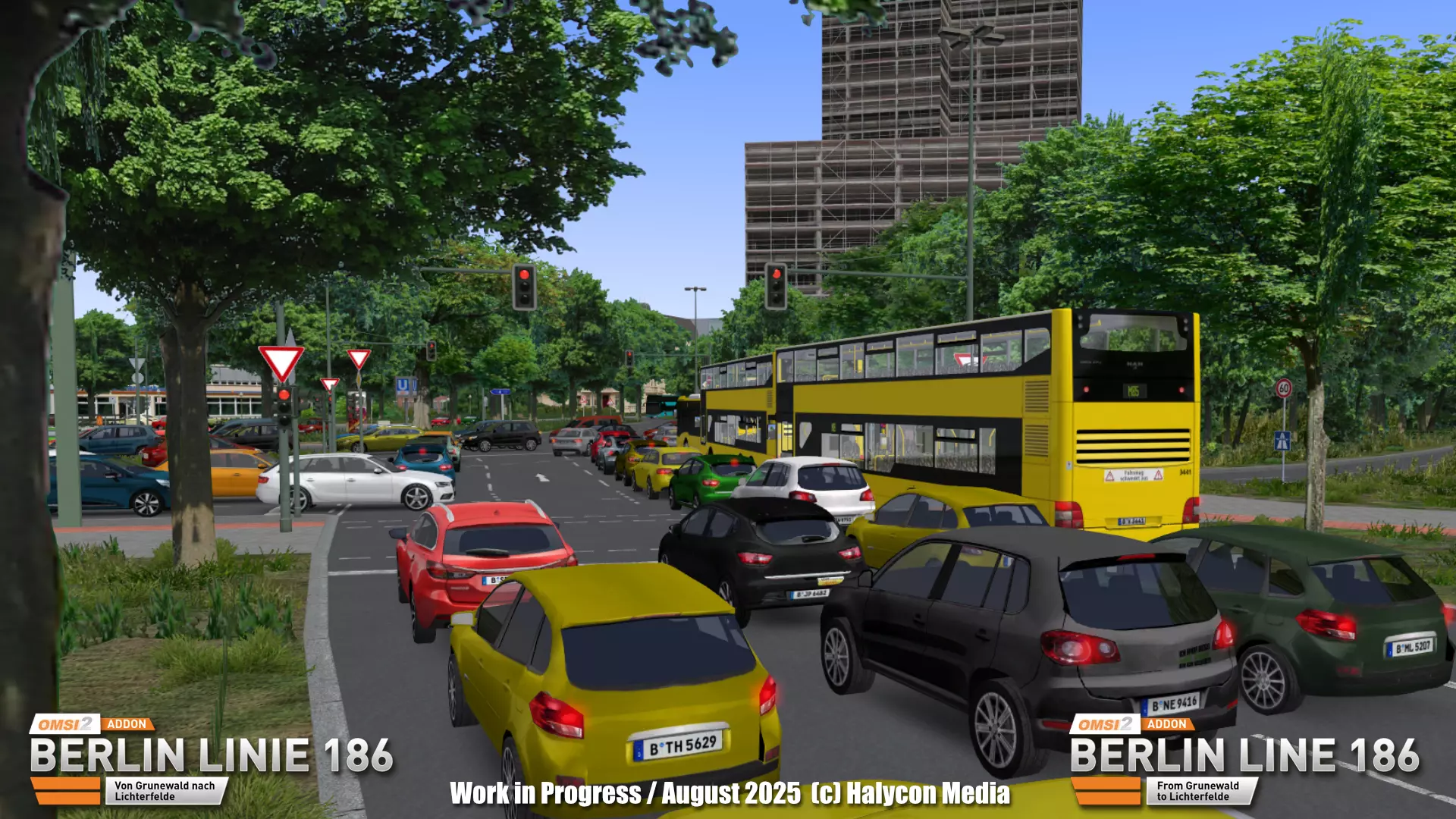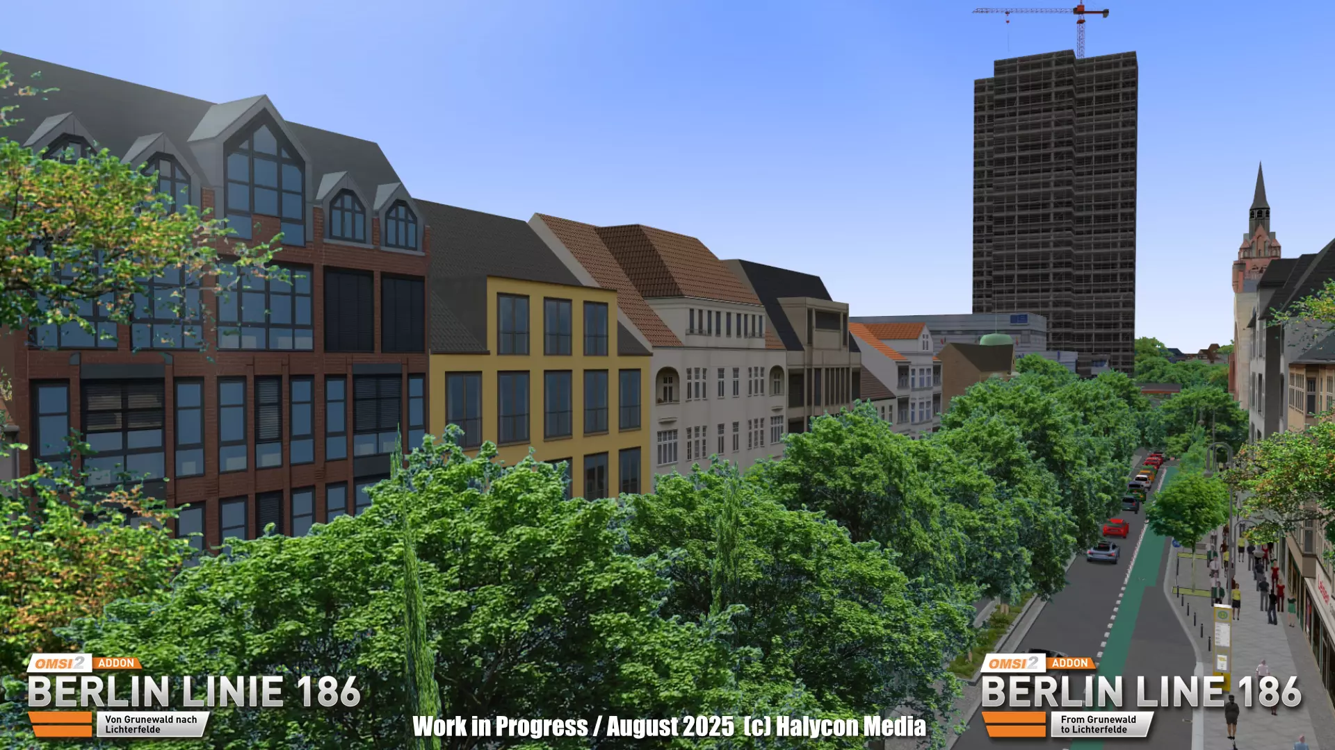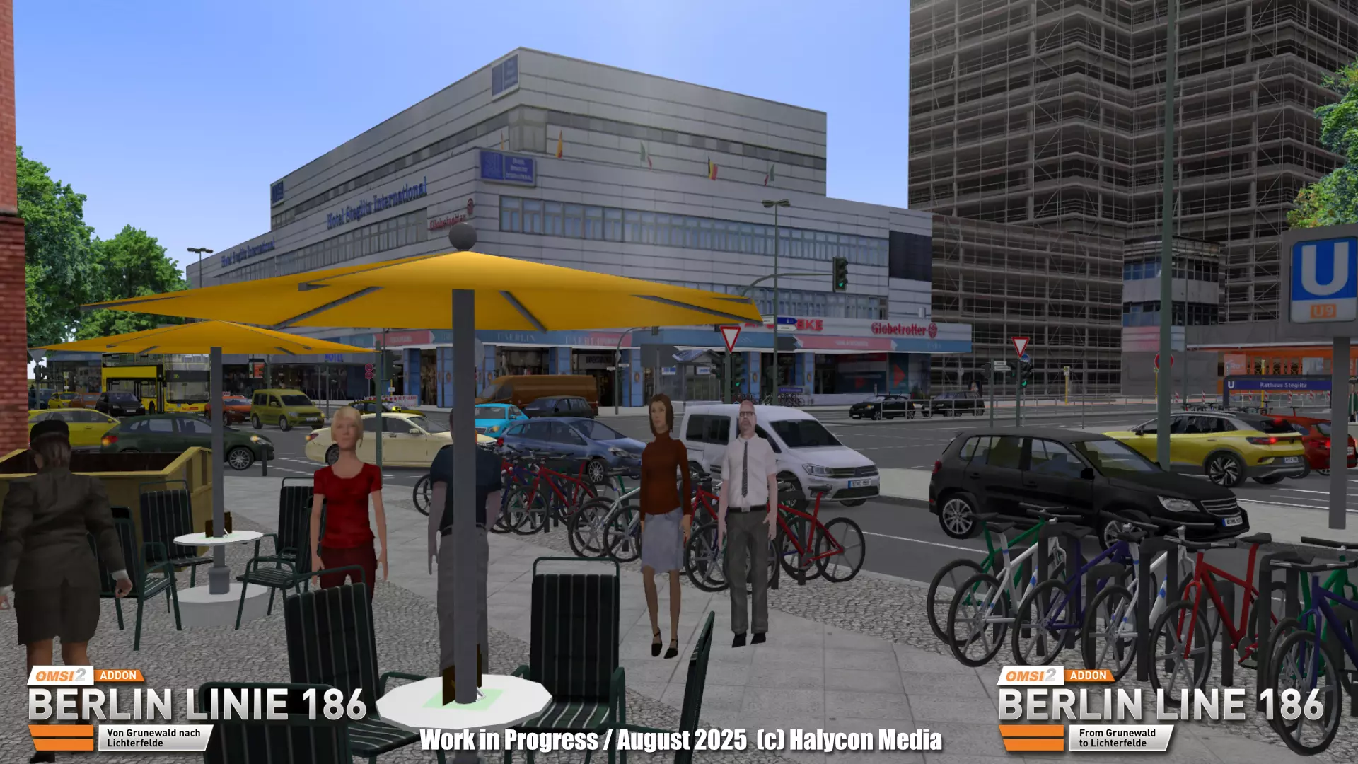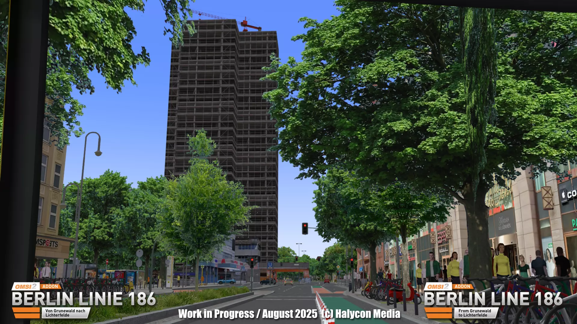 我们将继续为您带来关于《186号线》开发的精彩内容! 这次,我们带您来到柏林的施泰格利茨区。焦点是该地区最具特色的地标之一:施泰格利茨环形大厦。 其特别之处在于**集成的公交环路**:车辆直接驶入大楼,乘客可方便地上下车,然后公交车再驶离大楼。 这在柏林确实是独一无二的设计,我们当然会在《巴士模拟》(OMSI)中忠实地重现这一场景。大厦上方的高层建筑则没那么幸运——多年来一直是建筑工地——但环形大厦仍然是柏林南部的显著地标以及繁忙的交通枢纽。 在后续阶段,我们还将展示环形大厦内部的图片。相关工作仍在持续推进中,因此该建筑将在我们后续的开发者日志系列中拥有专门的介绍。 此外,我们还分享了伯克布施大街的首批图片。目前我们仍在替换场景中的物体,并致力于让周边环境更贴近现实。街道景观以柏林典型的灰色、米色或柔和的淡彩色调公寓楼为主。众多小型商店和餐馆为这条街道注入了活力——这一细节我们当然也会在游戏中体现。 重要提示:截图中所有可见的公交车目前仅为测试用占位模型,并不代表最终附加内容中会包含这些车辆。 一如既往:所展示的图片均来自开发中的版本。最终版本发布前将进行多项优化。请保持关注,也欢迎通过Facebook或Telegram关注我们,以确保不会错过任何更新。顺祝商祺,Halycon Media开发团队敬上。