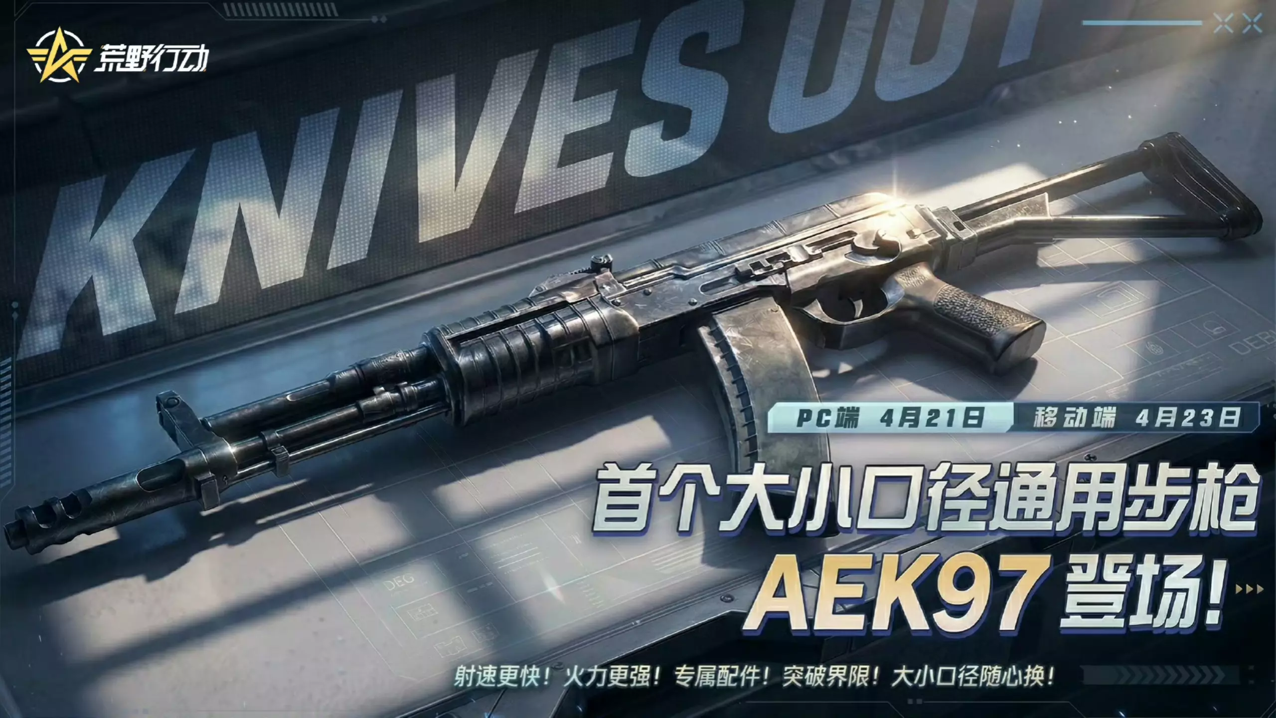 荒野行动S47赛季“闪电追迹”将于4月23日开启,全新枪械AEK97同步登场,它是首个大小口径通用步枪,还推出首款金品皮肤“涡轮电涌”,通行证达50级即可获取该皮肤,同时还有新能源车、时装等内容上线。