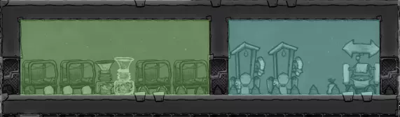 氧气作为一种比二氧化碳轻的气体,往往会向上飘散。因此,玩家需要在殖民地较低的区域制造二氧化碳气团,以防止二氧化碳干扰复制人的日常生活。 可在二氧化碳区域建造的房间: **畜栏和温室是建造在二氧化碳气团内的理想选择**,因为大多数动植物并不介意在充满二氧化碳的环境中生长! 房间高度直接影响其容纳二氧化碳的量: **较高的房间往往比较低的房间能容纳更多二氧化碳**,所以尽量将房间建在所需的最低高度。也就是说,对于大多数房间而言,4格高度(恰好是复制人能够挖掘的最大高度)是最理想的。不过,对于储物间来说,2格高度就已经绰绰有余了。 氧气扩散器: 值得在每个你希望保持氧气充足的房间内放置一个氧气扩散器,尤其是复制人睡觉的房间,因为他们会呼出大量二氧化碳。但要注意,需将能量发电机与其他房间分开放置! 房间加成 游戏中你首先需要建造的两个房间将会是复制人的卧室和卫生间。以下是你可能想要为你的复制人打造的两个房间和浴室示例(我建议放置两张床,留出两个空位,一个用于氧气生成器,一个用于装饰品,另外再放两张床;而在浴室里,放置两个厕所——尽管一个就足够了,但它们通常只有15次使用容量,由于你一开始有3个复制人,在极短的时间后它们就会变得无法使用,因此每个浴室配备两个厕所会更高效——留出两个空位,未来将用于氧气生成器和环境除臭器——它将去除该区域的部分细菌——最后是一个洗手池——注意这还不是水池,水池会在之后解锁,而且这些洗手池在使用方面是自动化的)(收集清洁用水)虽然你最初只有三名复制人,但很快就能解锁第四名。因此,准备一张额外的床总是个不错的选择。