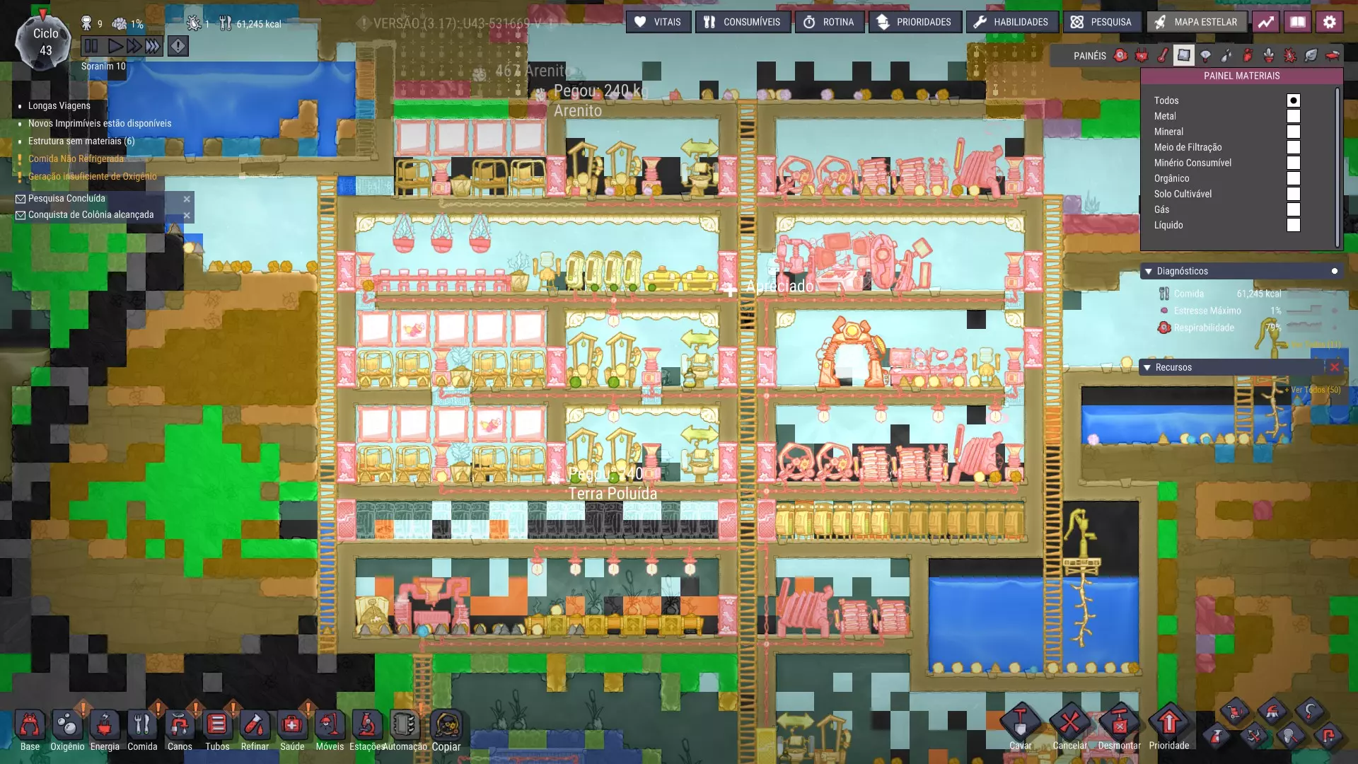 > 材料面板 虽然查看基地时可能没什么用,但在游戏中期,当你需要特定资源(例如用于建造特定结构的铜,或为氧气发生器提供燃料的海藻)时,它能大大减少你在岩壁上寻找材料的工作量!