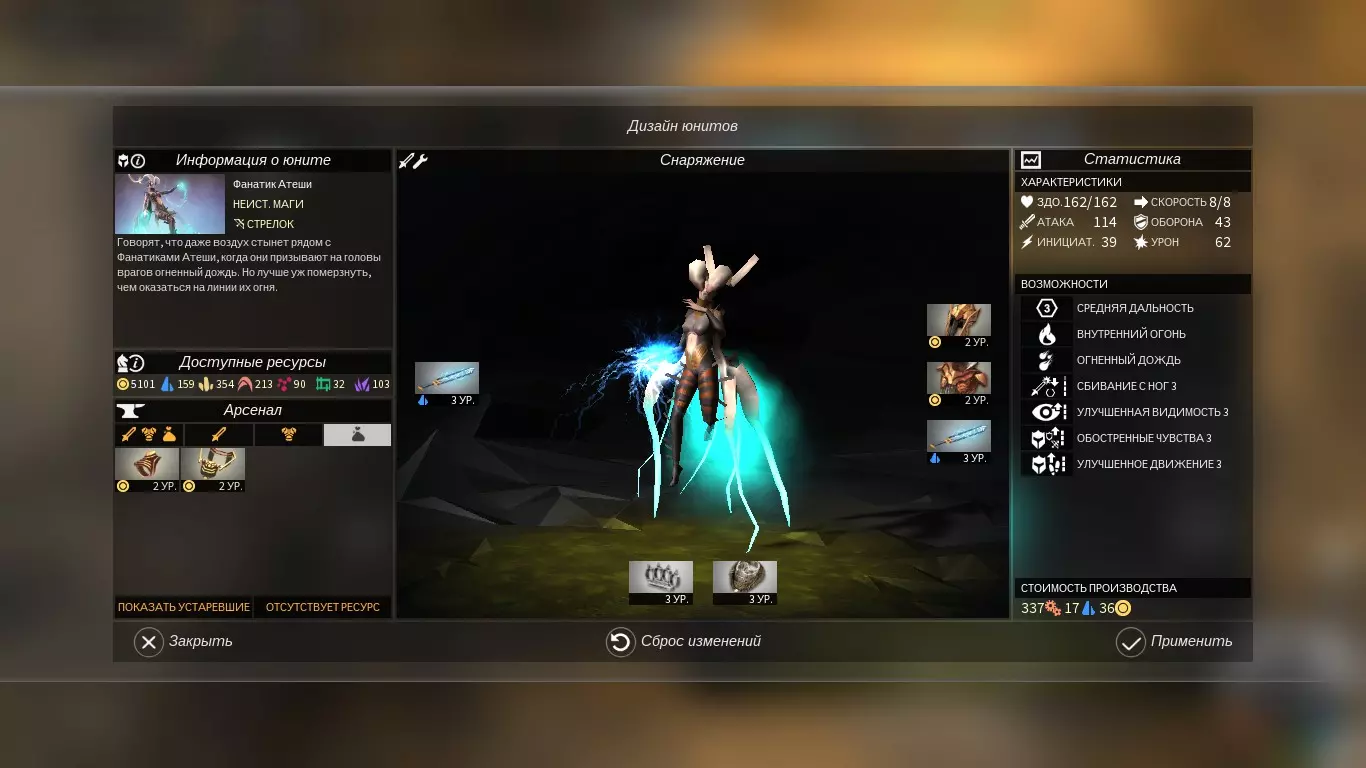 从祭坛3级开始,其作用半径将从祭坛周围1格扩大到2格,从而覆盖19个格子。祭坛达到最高等级时: - 灰烬、进度或食物的产量在冬季最高可达19×19=361,夏季最高可达19×16=304 - 声望的产量在冬季为19×6=114,夏季为19×5=95这是相当可观的数字,因为祭坛的数量没有限制,但每增加一个新祭坛,后续祭坛的成本就会上升。 获得的灰烬点数、进度、食物和声望并不属于格子资源,因此,如果祭坛所覆盖的格子没有所需资源,它们不会强化几何实验室、肥料生产设施、灰烬转化器等建筑。例如:城市位于草原和混交林地带,所有格子均无进度;建造进度祭坛后,它不会强化城市中已建造的几何实验室。 所有4种从祭坛获得的资源会通过城市中能按特定百分比提升产量的建筑得到强化,例如:铸币厂、谷仓、公共图书馆等。 法术在灰烬之战中使用。它们在战斗中仅能使用3次,分别在瞄准的第1、3和5阶段。 随着法术等级的提升,其威力会增强,但只有贝西利娅法术(Бессилия)的范围会扩大。从第二级开始,贝西利娅法术不再只击晕单个目标,而是击晕作用范围内一个格子内的目标。从第三级开始,该法术还会降低敌人的防御力。《军队与英雄》 狂法师的倾向也体现在部队的阵营技能上。**内心之火——将损失的生命值转化为攻击力**。这正是“痛苦之力”的核心特征。法师部队初始生命值非常低,因此在游戏初期与中立单位战斗时很容易损失部队。不过,随着研究新技术、强化部队,法师会成为极其危险的对手。 部队