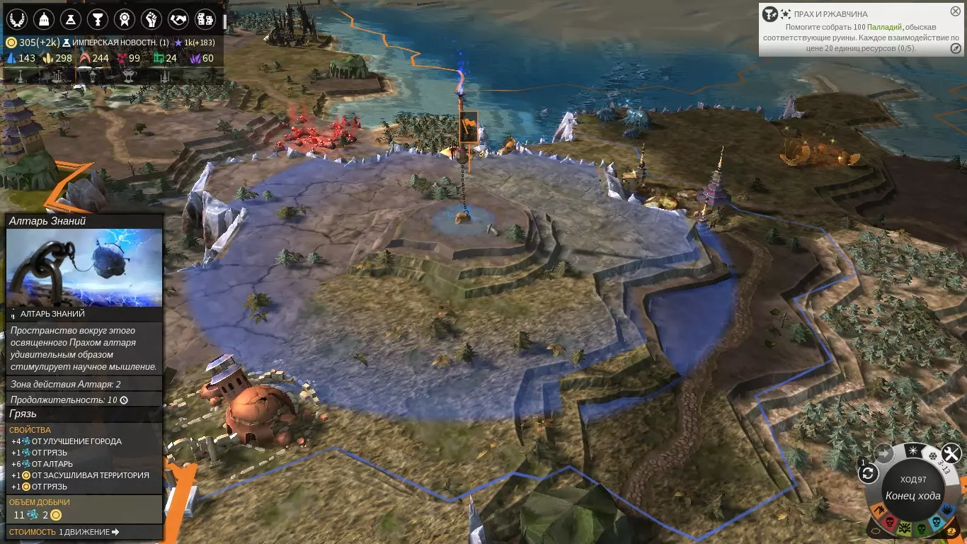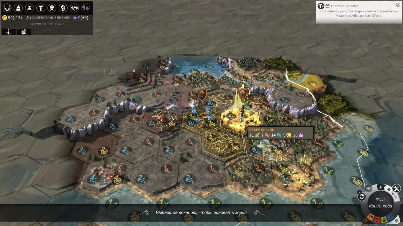 游戏开始时,玩家将操控一名英雄、两名法师泰尔瑟姆以及一名殖民者。有时遗迹可能离起始位置非常近,因此建议先派遣一名法师去探索遗迹:这不仅能为第二个祭坛带来粉尘,还能触发该区域的殖民任务。但要小心,有小概率会遭遇流浪军队的袭击。我们正在精心挑选未来城市的建造地点:需要大量的异常点、生产设施、尘埃和食物。不必过于关注进度等级——我们可以通过祭坛和建筑物来提升它。异常点对法师而言至关重要,因为英雄们能够增加来自异常点的进度获取量。