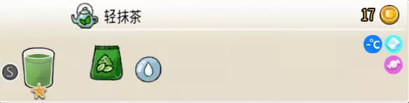 2-2 轻抹茶(小杯) 出售原价:17 状态:常温/加冰,无糖/加糖 配方:速溶抹茶×1+水×1,搅拌 等级:1星