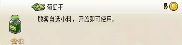 葡萄干 出售原价(一份):5 等级:1.5星