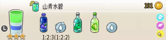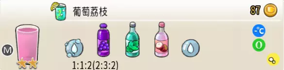 1-2 净水(小杯) 出售原价:6 状态:常温/加冰,无糖/加糖 配方:水×2 等级:0.5星