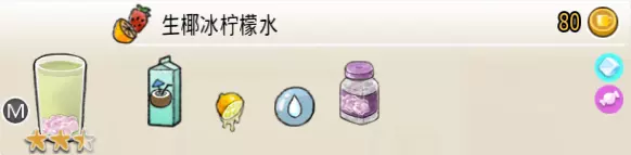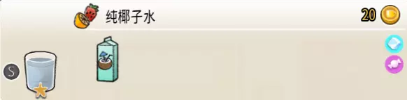 纯椰子水(小杯) 出售原价:20 状态:加冰,无糖/加糖 配方:椰汁×2 等级:1星