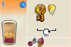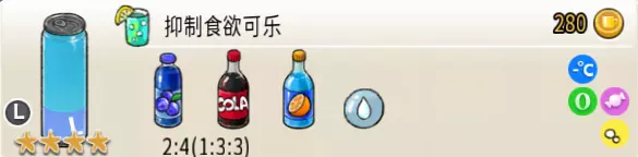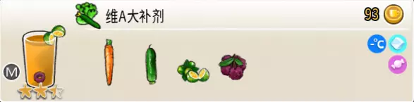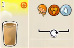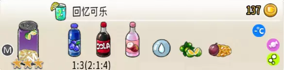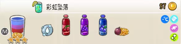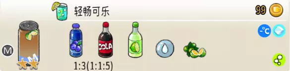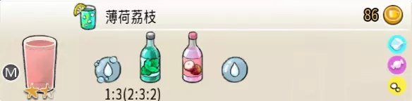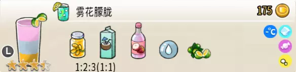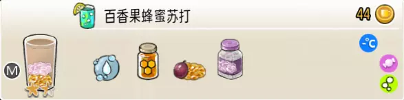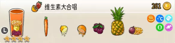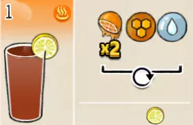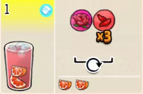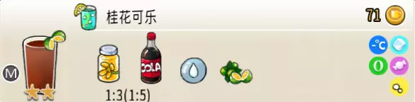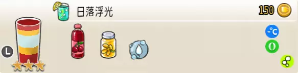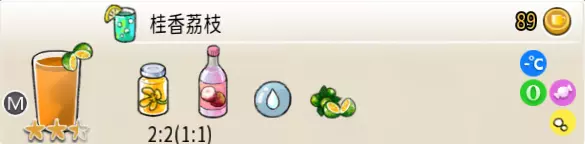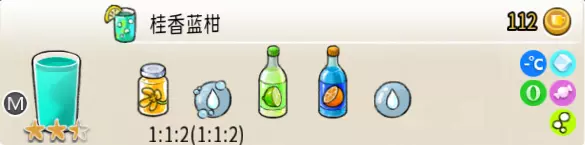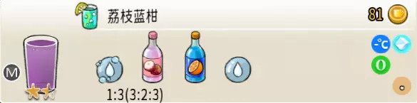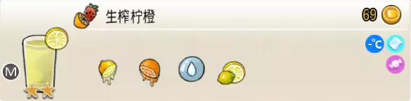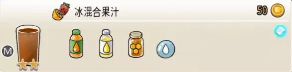 冰混合果汁(中杯) 出售原价:50 状态:加冰,无糖 配方:橙汁×1+蜂蜜×1+柠檬汁×1+水×1,搅拌 等级:2星