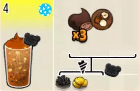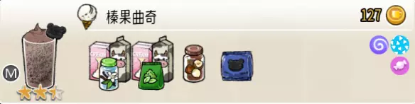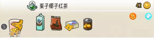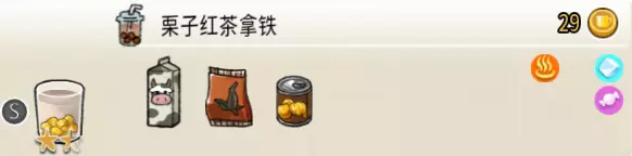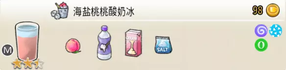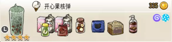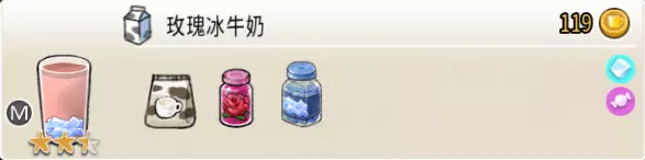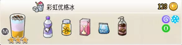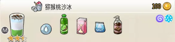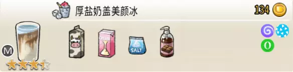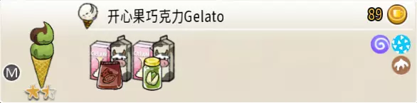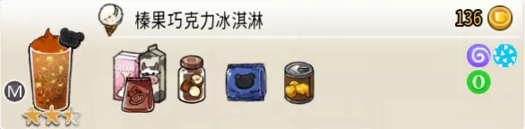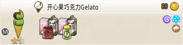 可可栗子冰淇淋(小杯) 出售原价:70 状态:粗冰淇淋/细冰淇淋,无糖/加代糖 配方:巧克力酱×1(挂壁,最先制作),可可味冰淇淋×2,栗子×1(小料,需搅碎) 等级:1.5星
