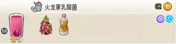 火龙果乳酸菌(中杯) 出售原价:62 状态:粗沙冰/细沙冰,无糖 配方:火龙果块×1+冰块×1+乳酸菌×2,破壁,火龙果块×1(小料) 等级:1.5星