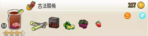 古法酸梅(超级杯) 出售原价:217 状态:加冰/加热,无糖 配方:杨梅块×1+草莓×1(棒打成酱,最先制作),甘蔗汁×1+黑糖糖水×3,鲜青桔切片×1(装饰),搅拌 等级:3.5星