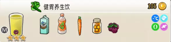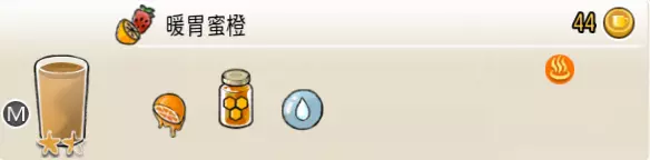暖胃蜜橙(中杯) 出售原价:44 状态:加热,无糖 配方:鲜橙×1+蜂蜜×1+水×1,搅拌 等级:1.5星