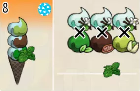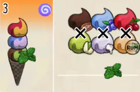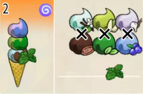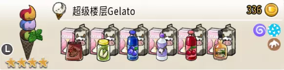 超级楼层冰淇淋(三层甜筒) 出售原价:336 状态:粗冰激凌/细冰激凌,无酱/加酱 配方:芝麻蛋筒+(可可味冰激凌+开心果味冰激凌,双色)×1+(蓝莓味冰激凌+酸奶味冰激凌,双色)×1+(樱桃味冰激凌+朗姆酒味冰激凌,双色)×1(按序),薄荷切片×1(装饰) 等级:4星