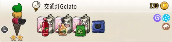 交通灯冰淇淋(三层甜筒) 出售原价:130 状态:粗冰激凌/细冰激凌,无酱/加酱 配方:芝麻蛋筒+樱桃味冰激凌×1+朗姆酒味冰激凌×1+抹茶味冰激凌×1(按序),黑曲奇×1(装饰) 等级:2星