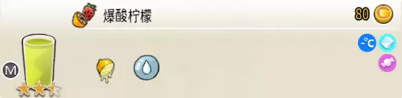 爆酸柠檬(中杯) 出售原价:80 状态:常温/加冰,无糖/加糖 配方:鲜柠檬×3+水×1,搅拌 等级:2.5星