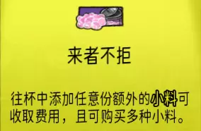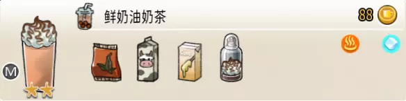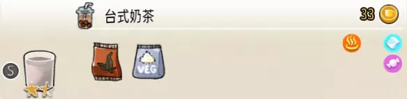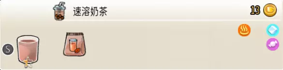 2-1 速溶奶茶(小杯) 出售原价:13 状态:加冰/加热,无糖/加糖 配方:速溶奶茶×2 等级:0.5星