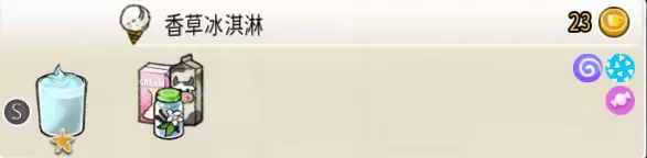 7-3 香草冰激凌(小杯) 出售原价:23 状态:粗冰激凌/细冰激凌,无糖/加糖 配方:香草味冰激凌×2 等级:1星