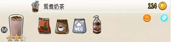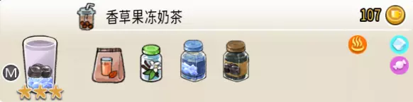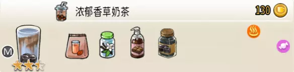 浓郁香草奶茶(中杯) 出售原价:130 状态:加热,无糖/加糖 配方:巧克力酱×1(挂壁,最先制作),速溶奶茶×3+香草糖浆×1,仙草冻×1(小料),搅拌 等级:2.5星