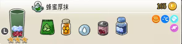 蜂蜜水(小杯) 出售原价:8 状态:常温/加冰,无糖 配方:蜂蜜×1+水×1,搅拌 等级:0.5星