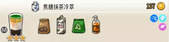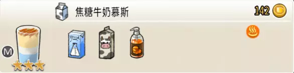 焦糖燕麦慕斯(小杯) 出售原价:50 状态:加热,无糖 配方:焦糖×1(挂壁,最先做),燕麦奶×1+热奶泡×1(按序) 等级:1.5星