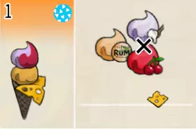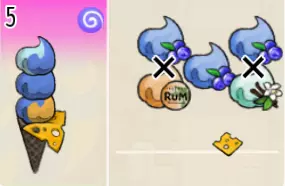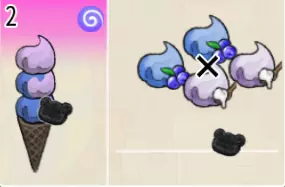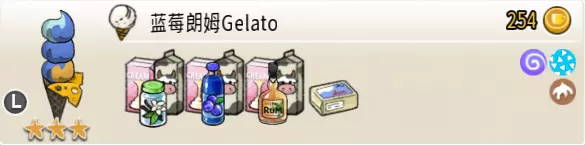 蓝莓朗姆冰淇淋(三层甜筒) 出售原价:254 状态:粗冰激凌/细冰激凌,无酱/加酱 配方:芝麻蛋筒+(蓝莓味冰激凌+朗姆酒味冰激凌,双色)×1+蓝莓味冰激凌×1+(香草味冰激凌+蓝莓味冰激凌,双色)×1(按序),芝士切片×1(装饰) 等级:3星