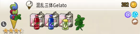 混乱三体冰淇淋甜筒(三层甜筒) 出售原价:302 状态:粗冰激凌/细冰激凌,无酱/加酱 配方:原味蛋筒+(樱桃味冰激凌+蓝莓味冰激凌,双色)×1+(樱桃味冰激凌+开心果味冰激凌,双色)×1+(蓝莓味冰激凌+开心果味冰激凌,双色)×1(按序),薄荷切片×1(装饰) 等级:3.5星