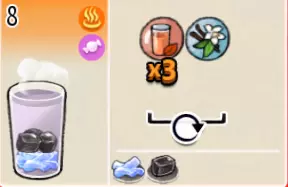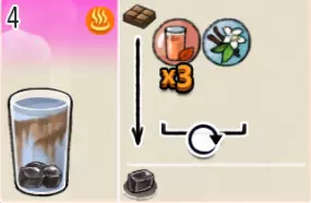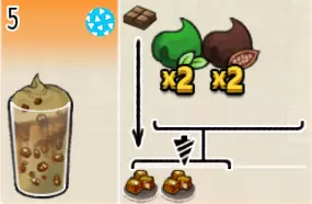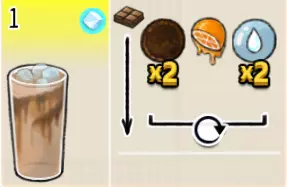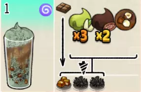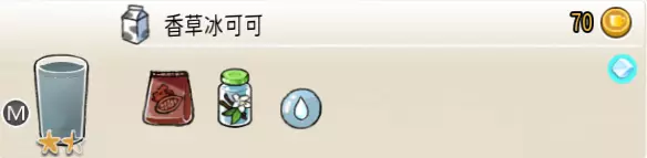 香草冰可可(中杯) 出售原价:70 状态:加冰,无糖 配方:可可×2+香草糖浆×1+水×1,搅拌 等级:1.5星