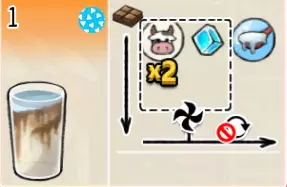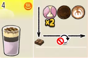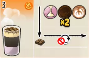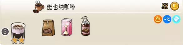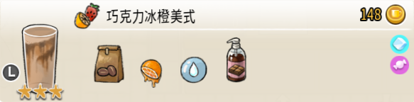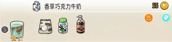 香草巧克力牛奶(小杯) 出售原价:55 状态:加冰/加热,无糖 配方:巧克力酱×1(挂壁,最先制作),速溶牛奶×1+香草糖浆×1,搅拌 等级:1.5星