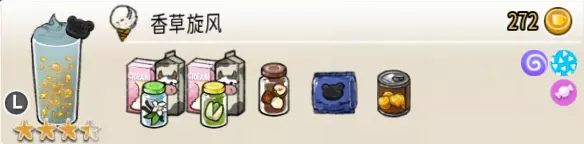香草旋风(大杯) 出售原价:272 状态:粗沙冰/细沙冰,无糖/加糖 配方:榛子果酱×1+香草味冰激凌×3+抹茶味冰激凌×2,栗子×2(小料,需搅碎),黑曲奇×1(装饰),搅拌 等级:3.5星
