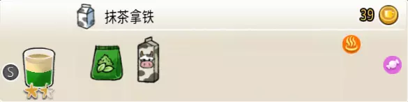 抹茶拿铁(小杯) 出售原价:39 状态:加热,无糖/加糖 配方:速溶抹茶×1+热奶泡×1(按序) 等级:1.5星