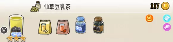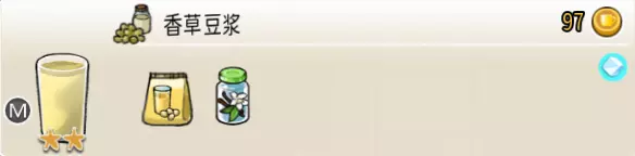 香草豆浆(中杯) 出售原价:97 状态:加冰,无糖 配方:速溶豆浆×3+香草糖浆×1,搅拌 等级:2星