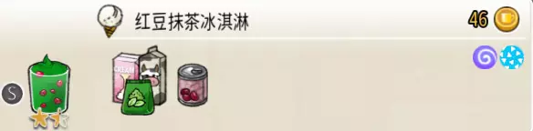 红豆抹茶冰淇淋(小杯) 出售原价:46 状态:粗冰淇淋/细冰淇淋,无糖 配方:抹茶味冰淇淋×2,红豆×1(小料,需搅碎) 等级:1.5星