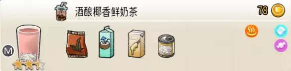 椰果奶茶(小杯) 出售原价:23 状态:加冰/加热,无糖/加糖 配方:速溶奶茶×2,椰果×1 等级:1星