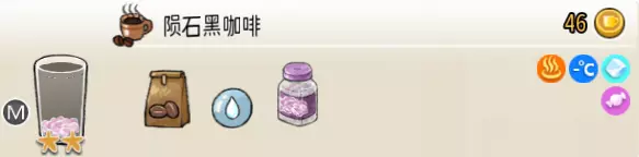 陨石黑咖啡(中杯) 出售原价:46 状态:常温/加冰/加热,无糖/加糖 配方:咖啡×2+水×2,脆波波×1(小料),搅拌 等级:2星