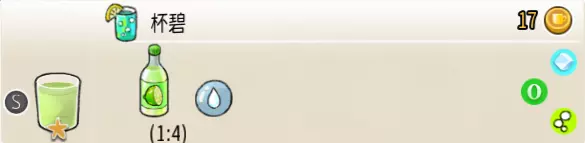 净水(中杯) 出售原价:8 状态:常温/加冰,无糖/加糖 配方:水×4 等级:0.5星