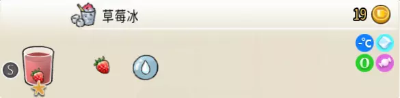 7-2 草莓冰(小杯) 出售原价:19 状态:常温/加冰,无糖/加糖/加代糖 配方:草莓×1+水×1,破壁,草莓×1(小料) 等级:1星