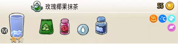 玫瑰椰果抹茶(中杯) 出售原价:55 状态:常温/加冰/加热,无糖/加糖 配方:速溶抹茶×1+玫瑰糖浆×1+水×2,椰果×1(小料),搅拌 等级:1.5星