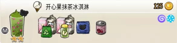 开心果抹茶冰淇淋(中杯) 出售原价:125 状态:粗沙冰/细沙冰,无糖 配方:开心果味冰淇淋×2+抹茶味冰淇淋×2,黑曲奇碎×1+红豆×1(小料,需搅碎),黑曲奇×1(装饰),搅拌 等级:2星