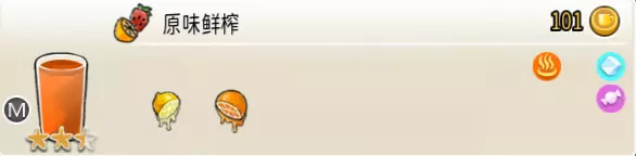 原味鲜榨(中杯) 出售原价:101 状态:常温/加冰/加热,无糖/加糖 配方:鲜橙×1+鲜柠檬×2,搅拌 等级:2.5星