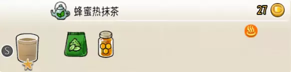 蜂蜜热抹茶(小杯) 出售原价:27 状态:加热,无糖 配方:速溶抹茶×1+蜂蜜×1,搅拌 等级:1星