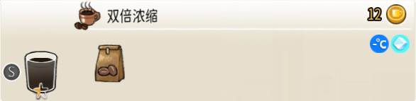 3-1 双倍浓缩(小杯) 出售原价:12 状态:常温/加冰,无糖 配方:咖啡×2 等级:0.5星