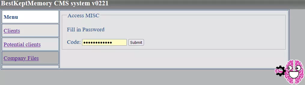 登录后台请使用以下信息: 用户名:cbrunswick 用户名可在向网站上的客服邮箱发送邮件后收到的邮件附件图片中找到(客服邮箱:support@bestkeptmemory.com) 密码:never_forget 密码可在解决故事页面的横幅广告谜题后找到