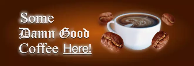 每个单词所用字体名称的首字母拼出了“TOOTH”: Some:Times New Roman Damn:Old English Text MT Good:Old English Text MT Coffee:Times New Roman Here:Helvetica 获得了表情2(眨眼表情),该表情来自Hans Adler的评论。